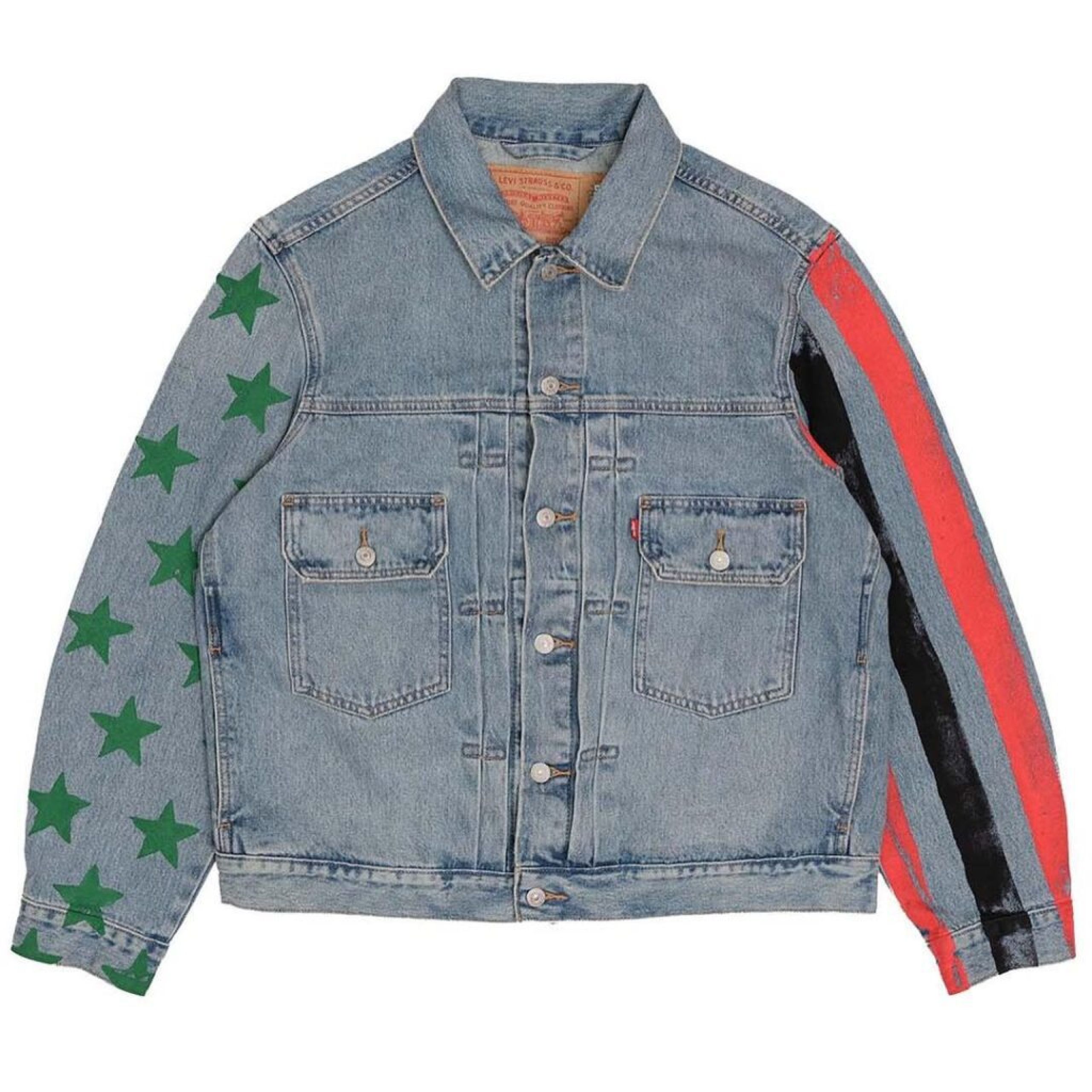 Denim Tears as lead by Tremaine Emory has announced plans for a Cactus Plant Flea Market denim jacket and jeans capsule. Paying tribute to Jimi Hendryx’s famed take on the Star Spangled banner, the denim is emblazoned with a combination of black and red stripes and green stars on three different washes: black, faded denim or white.